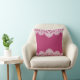 A bright raspberry pink background is contrasted beautifully with an intricate white lace border in this image, making a beautiful pillow that will brighten any room. Add your own customized text, if you'd like. *Please note - the image is printed on the surface, and contains no actual lace.* **Created using artwork purchased from Digital Design Boutique at http://digitaldesignboutique.com .