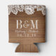 White Lace Rustic Barn Wood Monogram Wedding Can Cooler