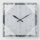 White Lace & Rustic Weathered Faux Wood Square Wall Clock