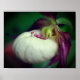 A single delicate white lady slipper orchid flower close up. Flower photography by Susan. For more floral, animal, and nature posters and prints, please visit my poster gallery Smilin' Eyes Posters. This image is available on many cards and products in my main store Smilin' Eyes Treasures. Visit my Profile page to find links to all of my stores.