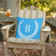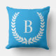 Change the pretty azure blue solid colour background on this white laurel wreath monogram design to create your own throw pillow. Modern monogram style font. You can change that font.