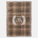Rustic and warm chocolate brown plaid pattern with white laurels frame and monogram letter with full family name in the centre.