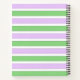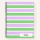 A notebook designed with a white, lilac and green striped pattern. Customize the notebook with your special name or text among other options.