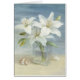 © Danhui Nai / Wild Apple. The image shows white lilies and shells placed along the seashore. The beach sand is white against a cool blue sea.