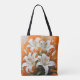 Beautiful white easter lilies on orange background tote bag