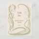 A wedding Thank You postcard with an handdrawn art nouveau inspired design, featuring white lilies with green leaves, that form an organic flowing frame on a beige background.