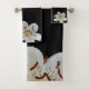 White Lily with Purple Centre on Black Background Bath Towel Set