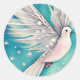 White little dove with ethereal wings on a blue background watercolor, this design features a beautiful white little dove with ethereal wings on a blue background watercolor.