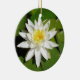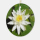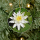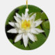Round ceramic ornament with an image, on both sides, of an extreme realism watercolor painting of a spectacular white lotus flower.