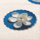 White Magnolia Blue Scalloped Round Coaster