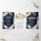 White Magnolia Blush Pink Floral Navy Blue Wedding Tri-Fold Invitation
