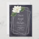 Simple and elegant white magnolia with geometric lines. This wedding invitation is perfect for your special day where you become married. Black textured looking background along with the white and green from the magnolia flower and leaves.
