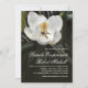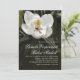 A graceful modern wedding invitation design featuring a beautiful white magnolia blossom on a dark background. White text in a right-justified format adds contemporary appeal. This invitation is a lovely choice for spring and summer weddings as well as garden or outdoor weddings. Edit the sample text with your wedding details. You can change the wording to suit your personal taste and preferences.