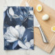 White Magnolia Pattern on midnight background, Kitchen Towel