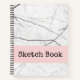 A typewriter inspired font reading 'sketch book' against a baby pink banner and white marble background.