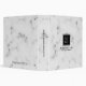This design features a white marble print with a custom logo and professional design.