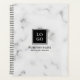 This design features a white marble print with a custom logo and black text, a modern, professional design.