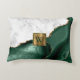 White Marble Gilded Emerald Green Agate Monogram Accent Pillow