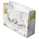 White Marble Gold Bridal Glitter Name Monogram Large Gift Bag