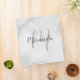featuring personalized name in grey modern script font style and monogram in light grey modern script font style as background on white marble background.