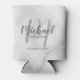 White Marble Modern Script Personalized Groomsmen Can Cooler