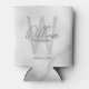 White Marble Modern Script Personalized Groomsmen Can Cooler