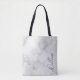 This design features personalized name in grey modern handwriting script font on white marble background.