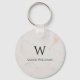 White Marble Monogram Modern Black Name & Initial Keychain