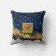 White Marble Navy Blue Gold Agate Monogram Throw P Pillow