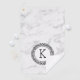 Trendy white faux marble with black ornate circle Mandela and custom monogram.