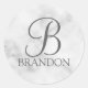White Marble Personalized Script Monogram and Name Classic Round Sticker