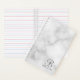 features personalized monogram in grey classic script font style and name in grey classic serif font style on white marble background.