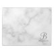 features personalized monogram in grey classic script font style and name in grey classic serif font style on white marble background.