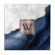 White Marble Rose Gold Navy Blue Agate Monogram Tile