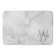 This design features personalized name in grey modern handwriting script font style and monogram in light grey modern sans serif font style as background, on white marble background.