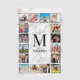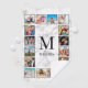 Create your own personalized 16 photo collage golf towel with your custom images, monogram and name on a stylish elegant white marble background.