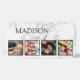 Create your own personalized 4 photo collage phone case with your custom images and name on a stylish elegant white marble background.