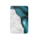 Elegant white marble and teal blue agate trimmed with silver faux glitter combine in this luxurious design.