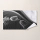White marble a frame with a black abstract graphic and underexposed tulips design for a modern up market guesthouse