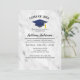 White Marble With Navy Blue Grad Cap Graduation Invitation