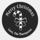 White Minimalist Candy Cane On Black With Text Classic Round Sticker