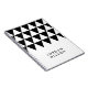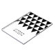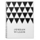 Modern minimalist white notebook featuring a black triangle pattern that you can personalize with your name. Great for school or office.