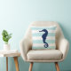 White Mint & Blue Wide Stripes Pattern Seahorse Throw Pillow