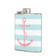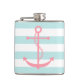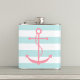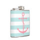 White Mint & Pink Wide Stripes Pattern Anchor Hip Flask