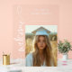 Bienvenue invités à votre grand fête avec un élégant panneau en acrylique clair avec texte blanc et photo. "Bienvenue" apparaît à côté dans la calligraphie script moderne. Personnalisez le modèle avec votre photo, le titre de l'événement, l'année de classe et l'école. © Kimbellished, LLC