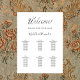 A classic white background. Personalize and add the name of the bride and groom, Add your guests names. Black text.