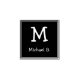 White Monogram and Name on Green Rounded Square Rubber Stamp