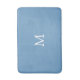 This is a medium blue background bath mat with your monogram in white at the centre. This bath mat matches the Floral Pattern Blue Border Monogram shower curtain and bath towel set in our store.