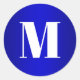 White Monogram on Royal Blue Ombre Classic Round Sticker