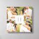 This classic multi-photo design features a white square with a grey monogram outlined with a sheer white layer. This custom canvas allows space for 4 wedding photographs from your special day.